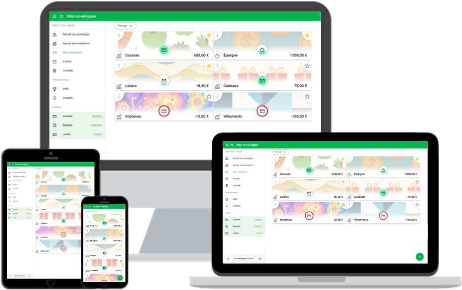 Avec Envo, organisez vos dépenses comme en vrai, mais en mieux ! Parce que votre budget mérite mieux qu’un tableur, et que votre sac en a assez de porter toutes ces enveloppes !